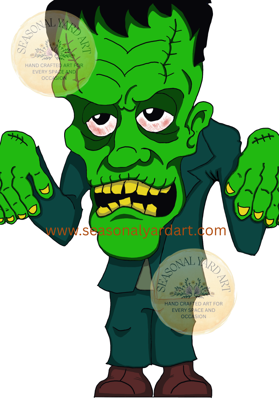 Frankie is enough to scare away all of the things that go bump in the night and is a download item only. This template will come in both svg and dxf formats. If you need another format, please contact me. Thank you for ordering and I look forward to seeing how you paint this design. Please post it on my Facebook account. www.seasonalyardart.com.