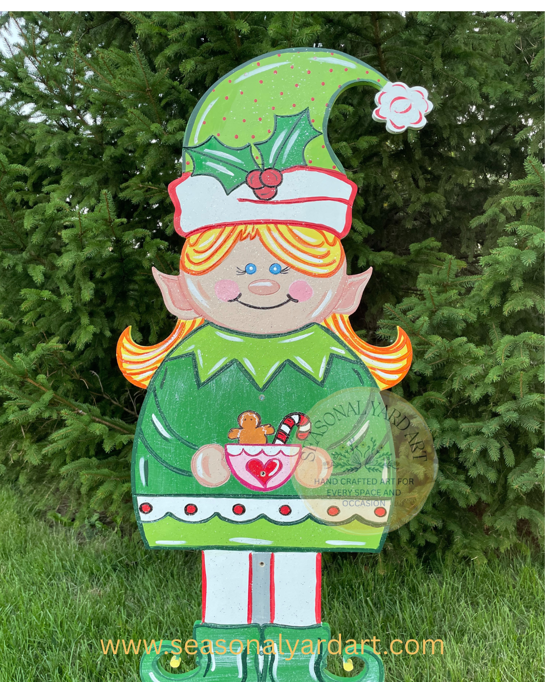 This adorable Girl Elf is a show stopping piece and will bring the magic of the holidays to your home. She stakes right into your lawn. She is 100% hand-painted and will let everyone know you have the holiday spirit. Order one for yourself and order one as a gift. (Add the Boy Elf to your order to have the set).